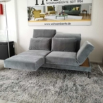 Sofa 2-sitzig Moule-Medium - 73107 BTH: ca. 200-240 x 110-154 x 82-108 cm Liegefläche: ca. 140 x 204 cm Sitzhöhe: ca. 42-44 cm Bezug: Stoff 4473/95 mit Schlaufe Füsse: Kufen schwarz pulverbeschichtet inkl. 2 Kissen (65 x 38 cm) Stoff 4473/