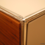 Hängeschrank Modul Space BTH: ca. 80,2 x 43,2 x 40,4 cm Lack schlamm matt (Front, Abdeck- und Unterplatte) Nussbaum (Seitenteile) Metallteile: Stahlrohr verchromt mit 1 Klappe mit starken Gebrauchsspuren
