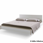 Das Bett FLAI von Müller Möbelwerkstätten kann ebenfalls mit einem Kopfteil aus Birkenschichtholzkante, demselben Material in dem das Bett gefertigt wird, erweitert werden. Das Kopfteil kann in den Farben weiss (CPL) und anthrazit (CPL)